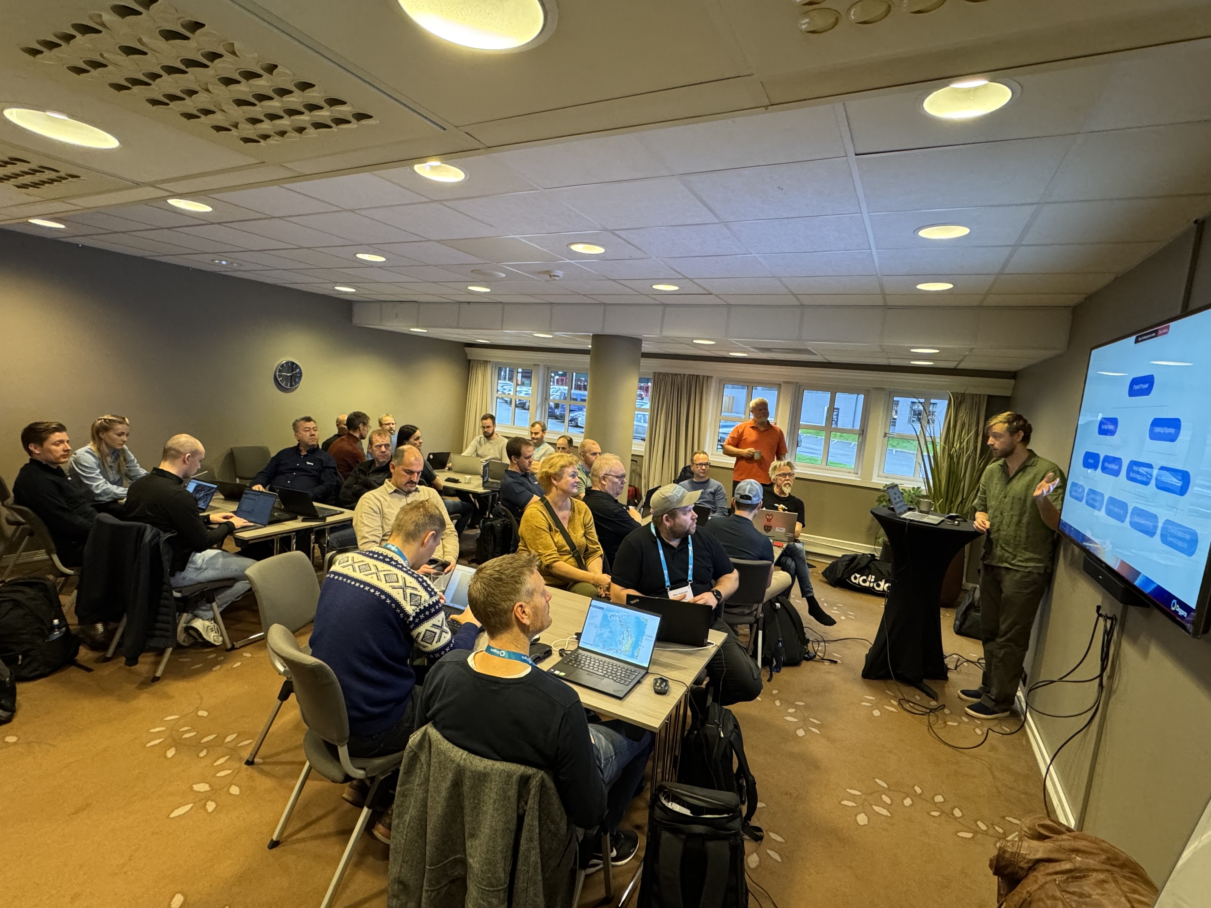 I stedet for lange presentasjoner valgte vi en praktisk tilnærming. De fleste selskapene er fortsatt relativt nye på NIS-løsningen, og derfor satt alle i egne NIS-miljøer mens produkteiere fra DigPro jobbet side om side med deltakerne. Det ga rom for konkrete avklaringer, testing underveis og nyttige diskusjoner ved bordene.